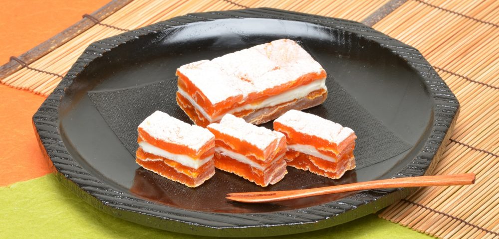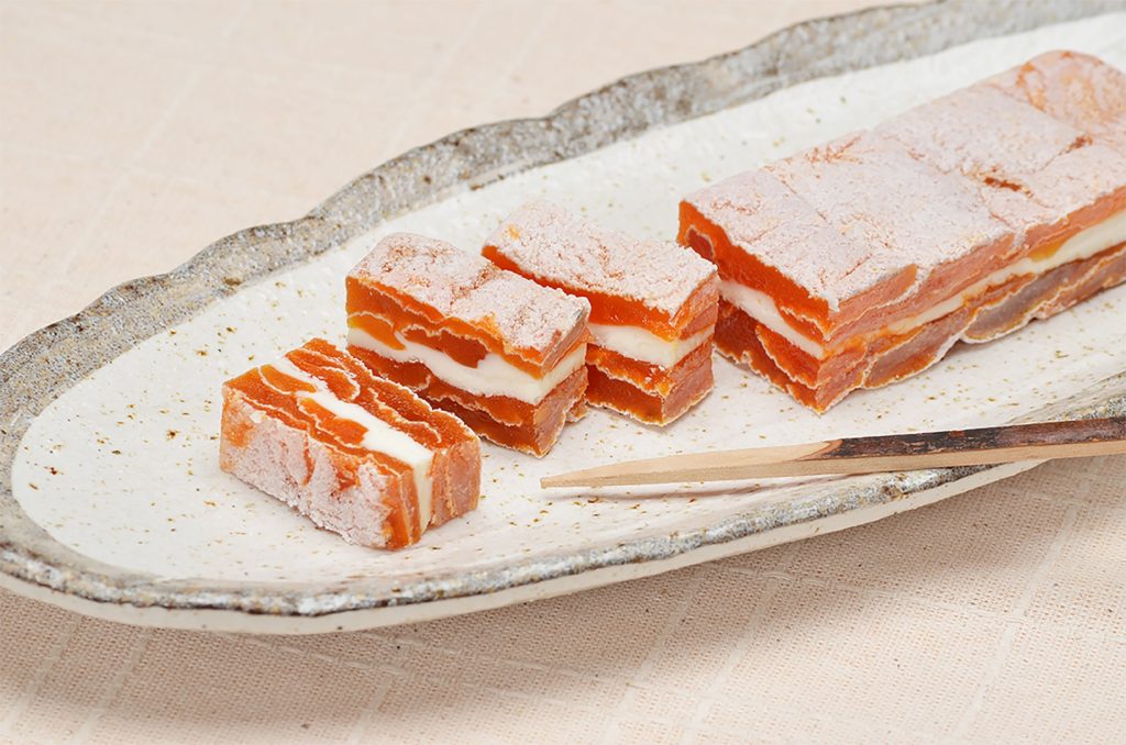 ご年配の方には元々人気のあった市田柿を若い方にも召し上がって頂きたいと考え、乳製品との相性が良いことから、信州産クリームチーズを使用し、見た目も楽しめるミルフィーユ状に仕上げました。